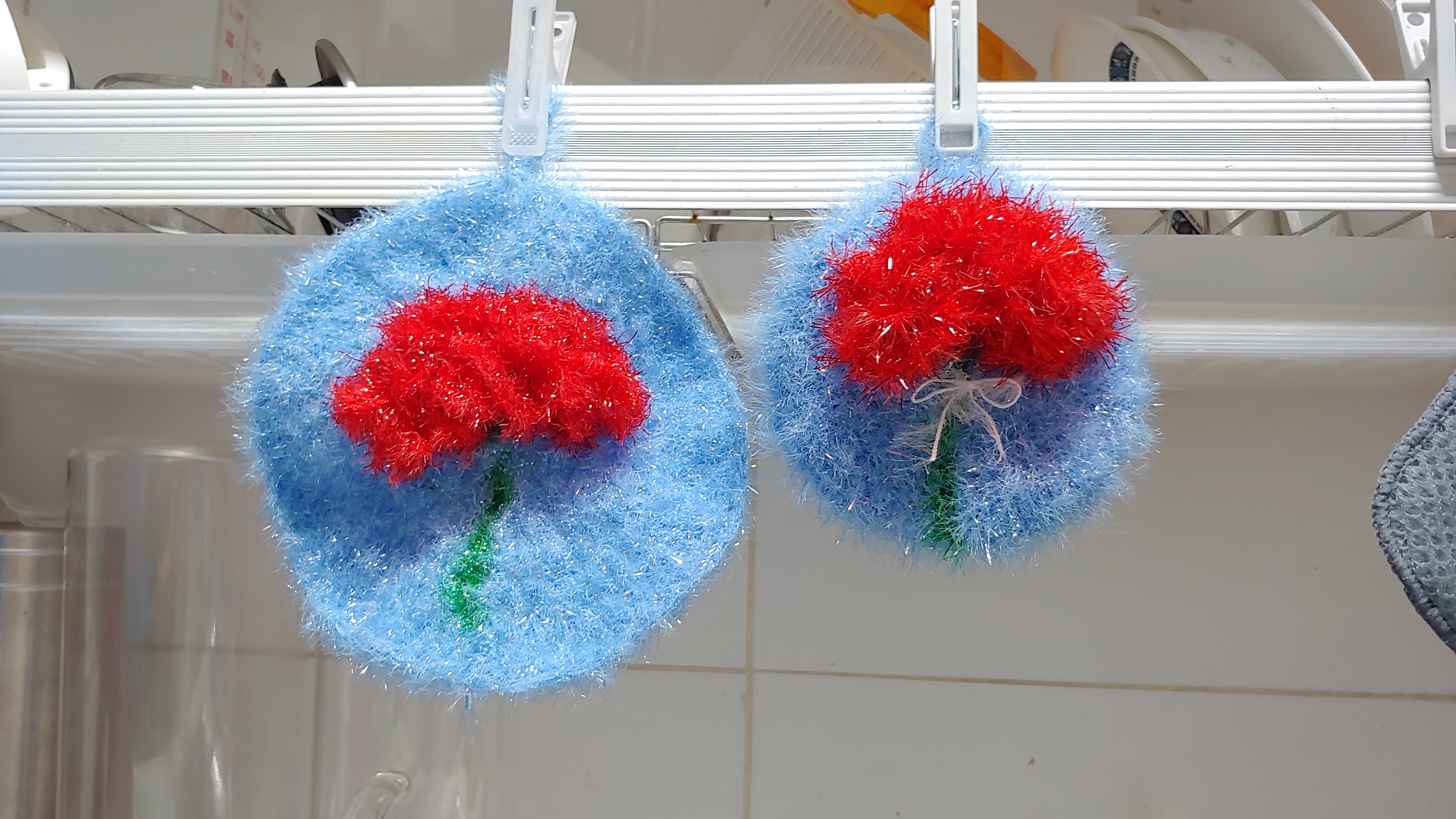완성한 모습입니다. 이렇게 떠서 어버이날 선물이나 유치원 선생님들 스승의 날 선물로 많이들 보내시더라고요. 수세미 엄청 빨리 뜰 줄 알았는데 호빵 수세미라서 그런가, 꽃잎이 오래 걸렸나 생각보다 오래 걸려요ㅠ 손도 엄청 아프고ㅠㅠ 두 개 떠보고 수세미는 제 전공이 아닌 것으로..ㅎ 여러 개 떠서 떼샷 찍어놓은 거 보면 진짜 귀엽던데 말이죠.