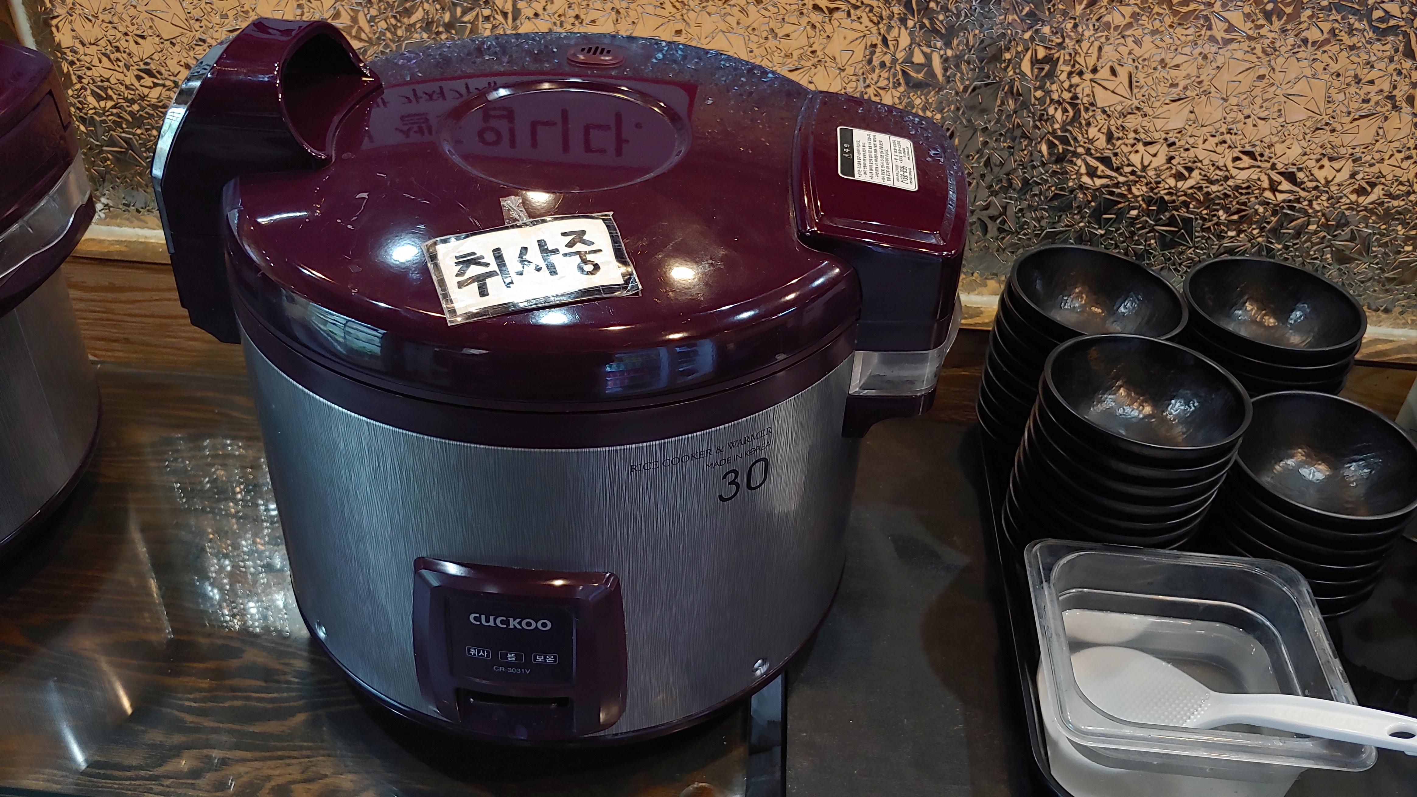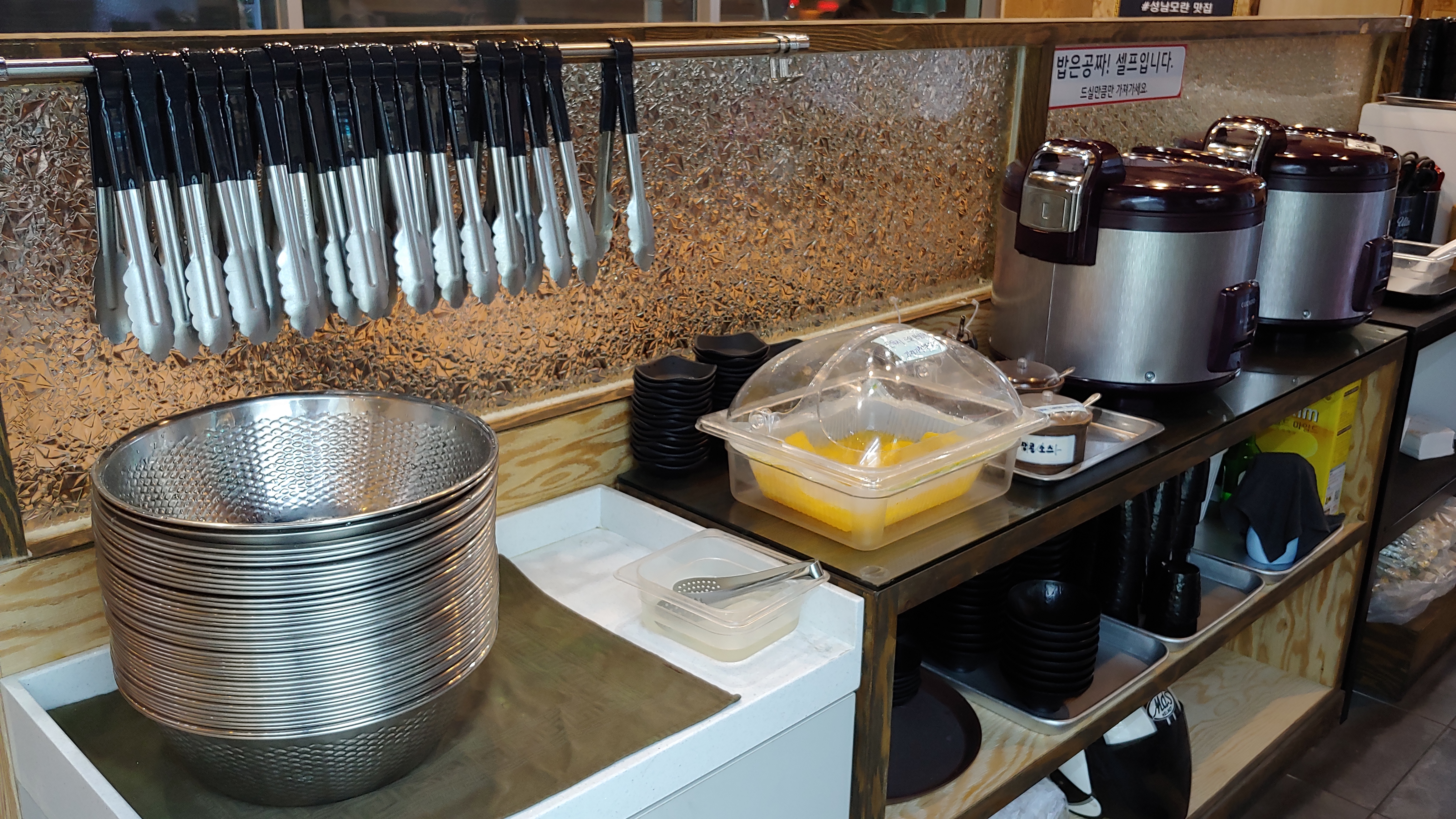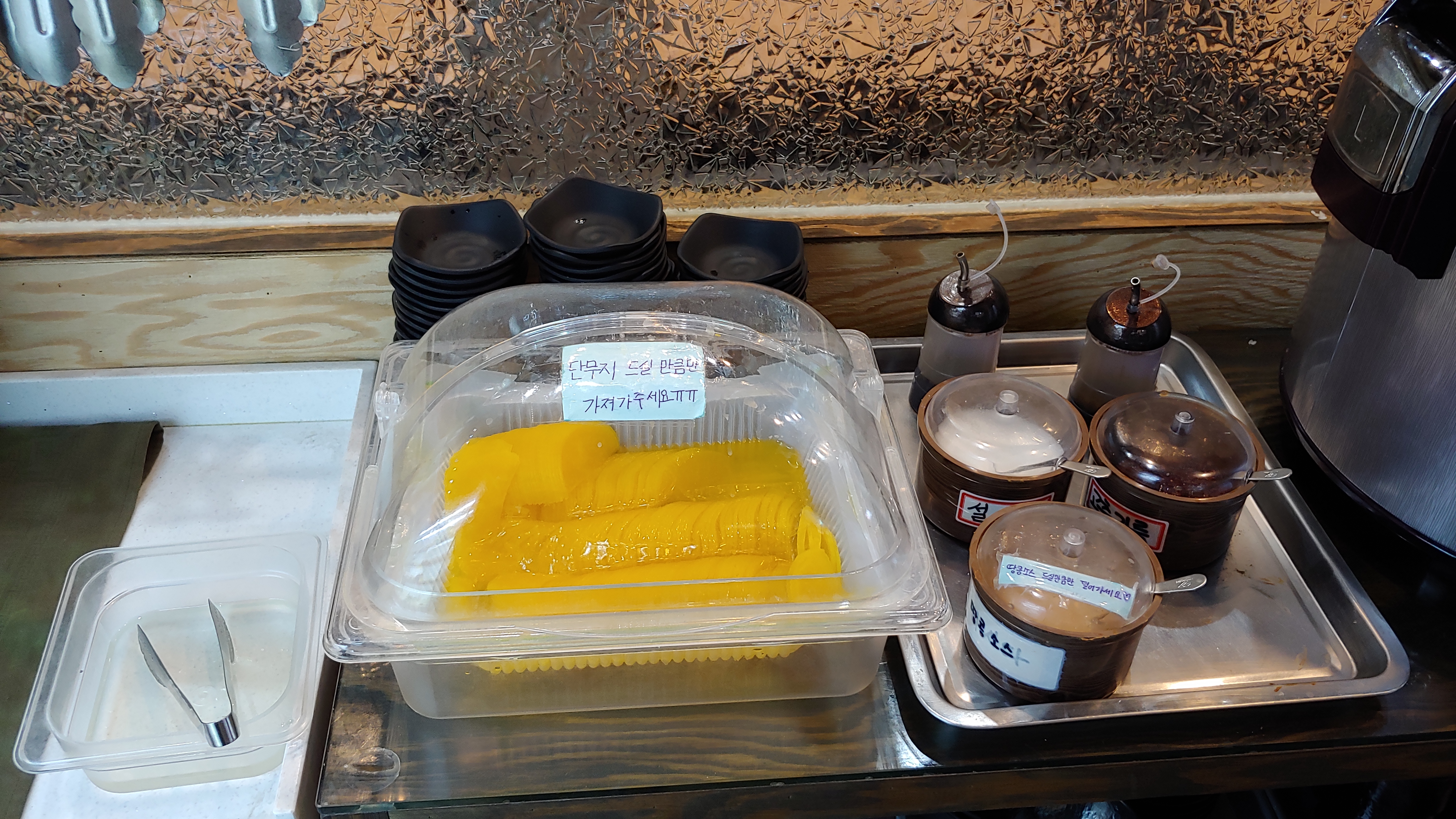 마라탕이 조리되는 동안 셀프바에서 단무지와 밥, 소스를 준비했습니다. 무한리필 조와요~~