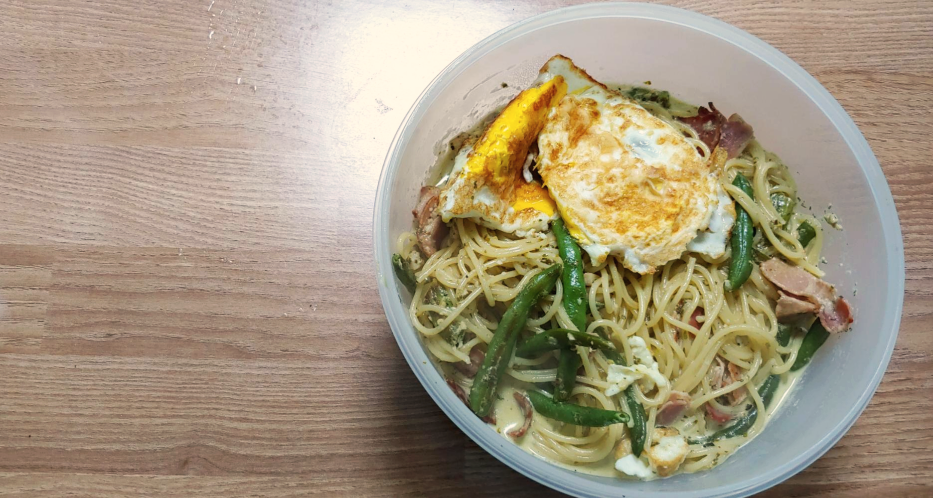 꾸덕꾸덕한 크림파스타는 아니었지만 계란 반숙이랑 먹으니 까르보나라 먹는 느낌도 나고?ㅋㅋ