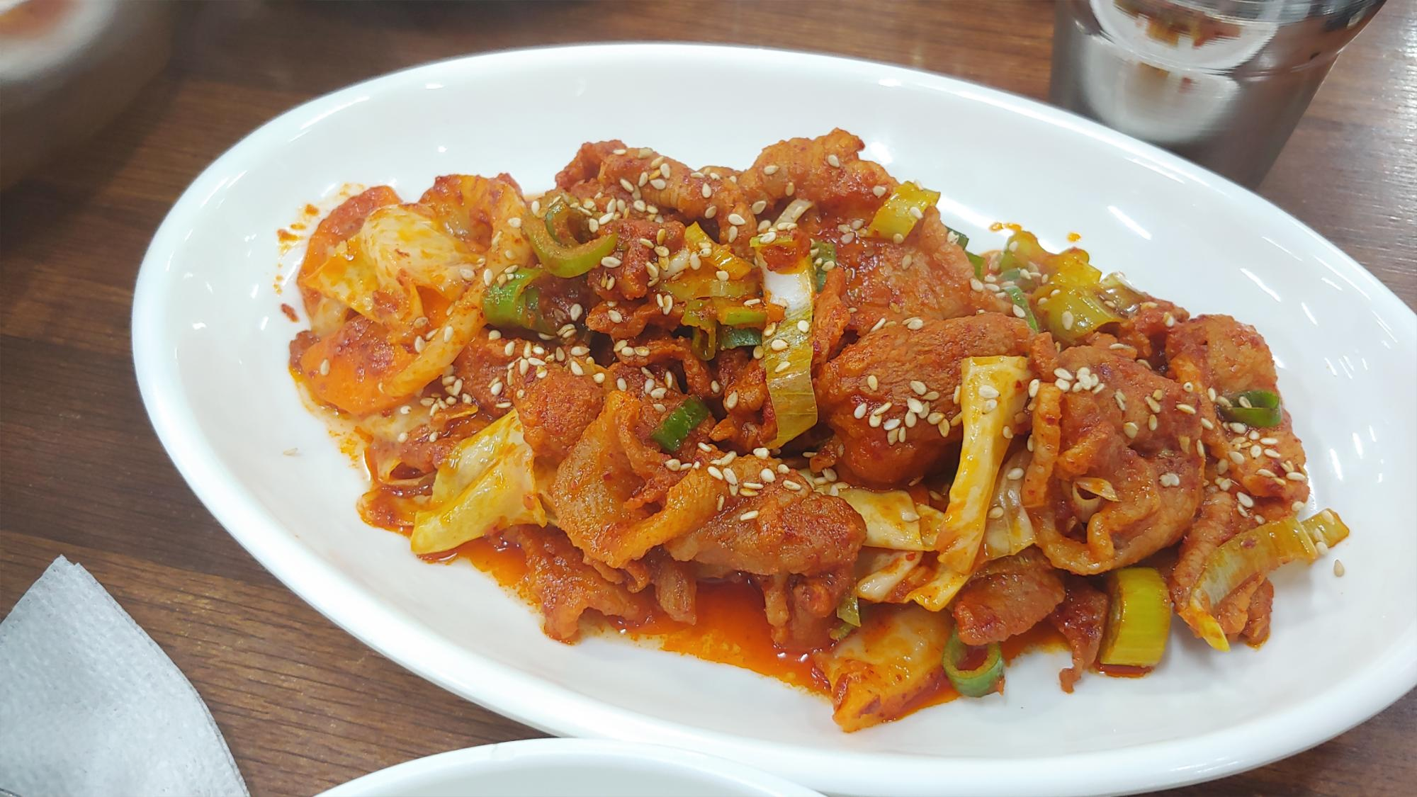 저희 회사에서 자주 가는 밥집이 있는데 거기 제육볶음은 자주 시켜 먹지만 육질도 아쉽고 약간 냉동실 냄새나거든요 ㅠ 아주 달고 강한 양념으로 그 냄새를 가리기도 해요ㅠ 근데 그게 그나마 맛있는 메뉴예요! 7천 원인가 8천 원인데 말이죠 ㅠㅠㅠ 갑자기 설움 폭발 ㅋㅋ