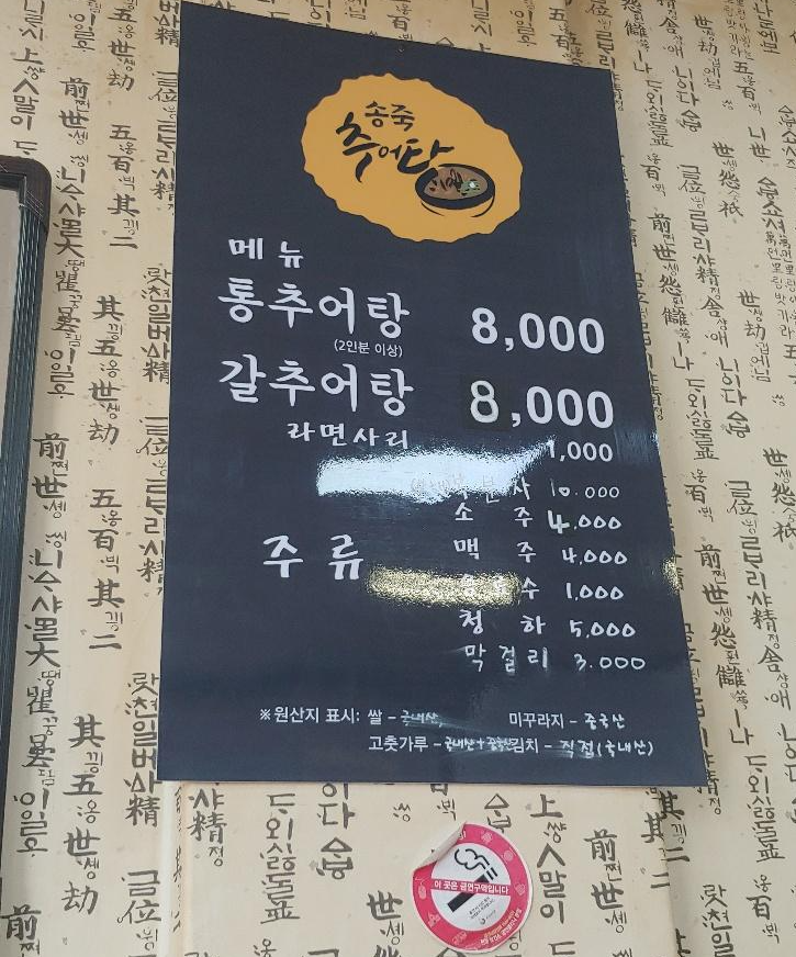 메뉴는 통추어탕, 갈추어탕 이렇게 두 가지입니다.
