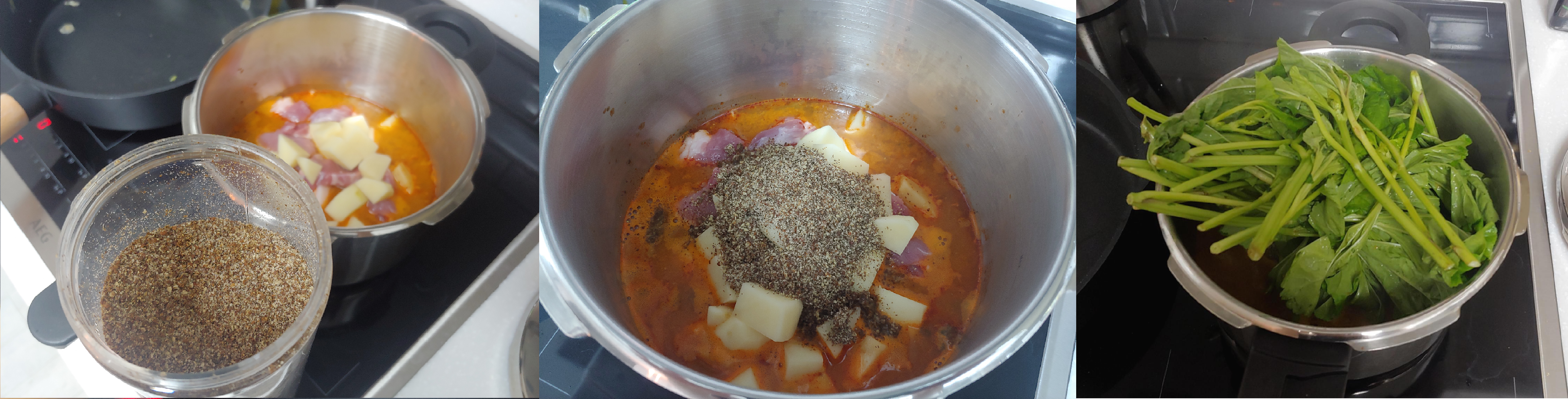 비비고 감자탕은 처음 먹어봐요. 감자랑 고기 우르르 넣고, 들깨가루랑 아욱까지 푸짐하게 넣어 먹었는데요, 역시 아무것도 첨가하지 않고 먹었다면 좀 심심했겠죠? 김치 쭉쭉 찢어서 같이 먹으니 수육 파티가 따로 없었네요.ㅋㅋ