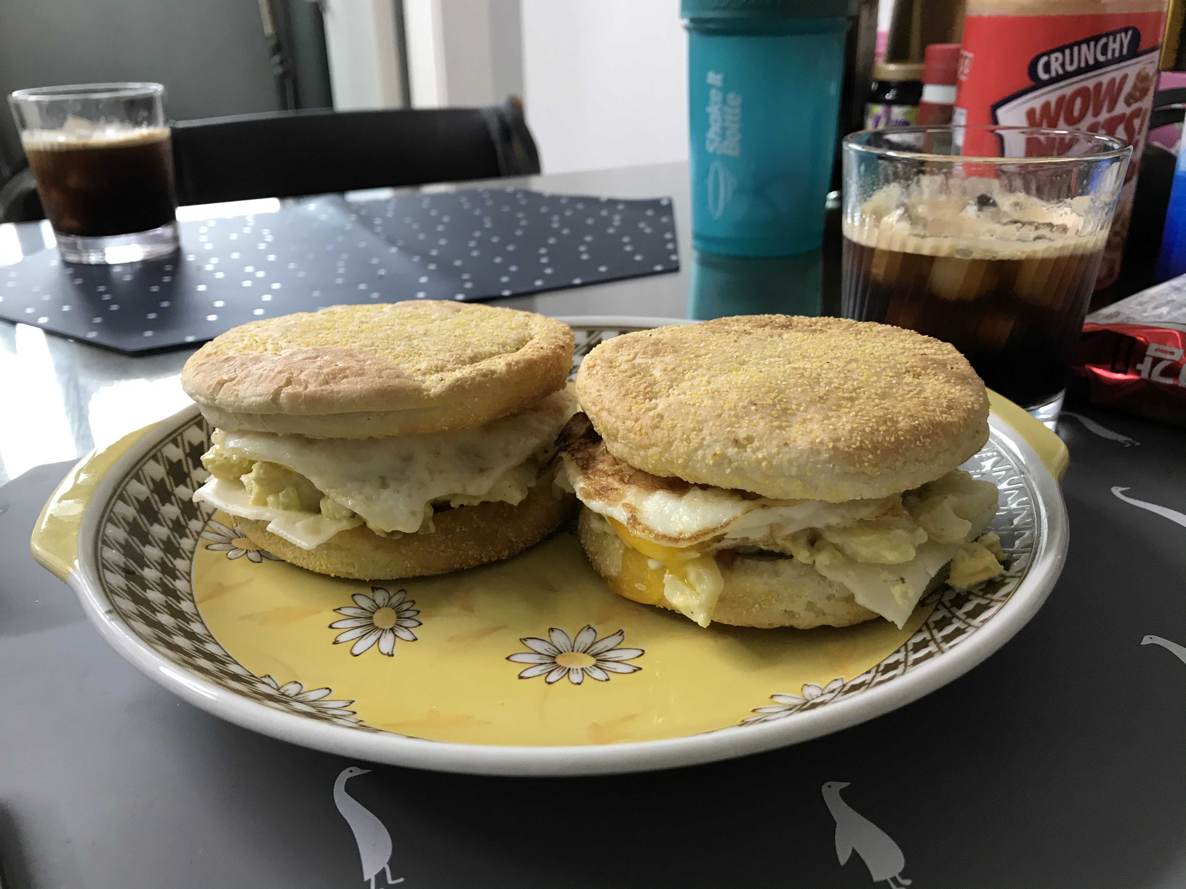 드디어 마지막 메뉴네요. ㅋㅋ 이건 아침에 먹은 건데 잉글리시 머핀에 감자 샐러드, 계란에 치즈까지 넣어