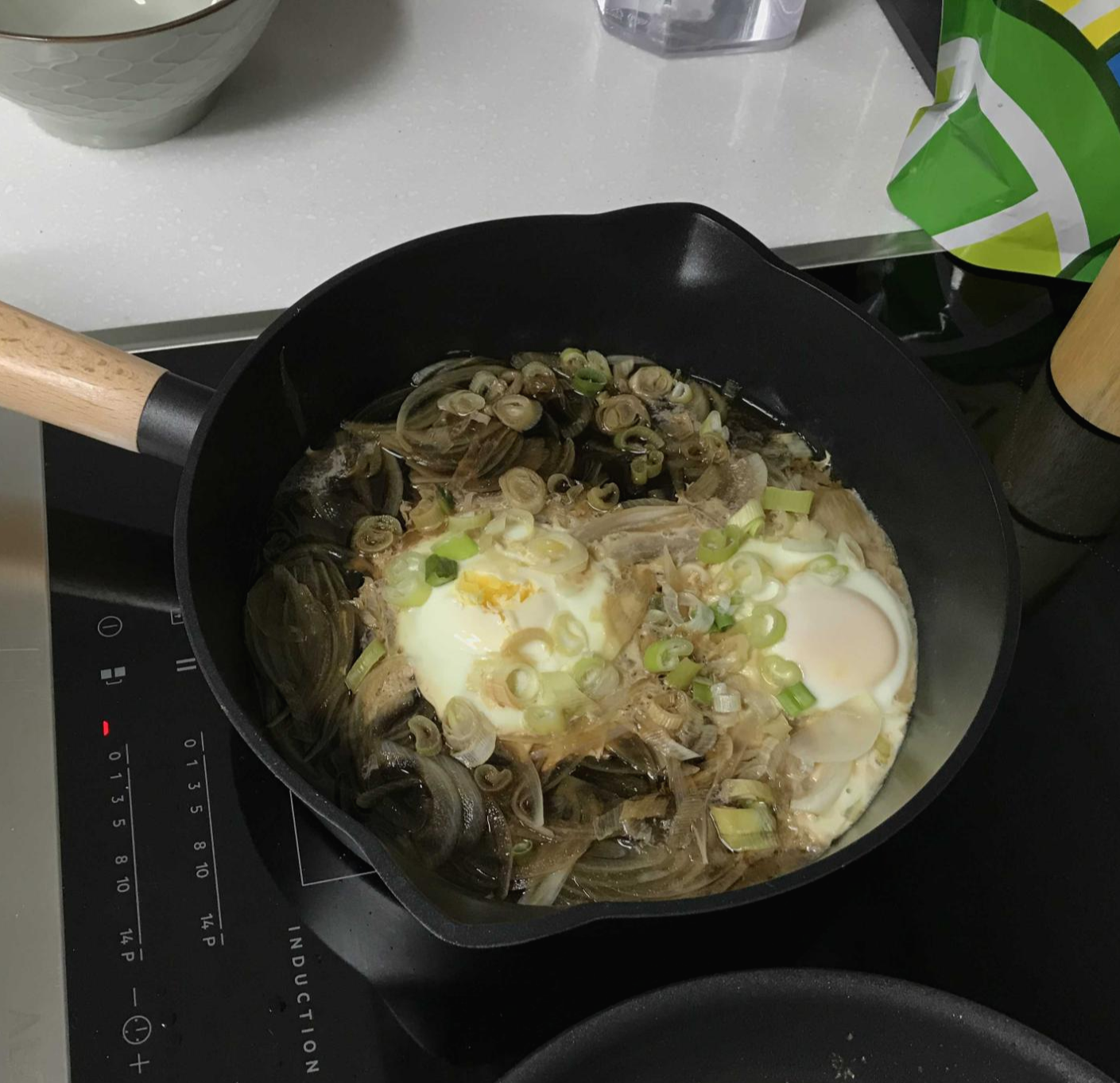 이렇게 만들었고요, 채 썬 양파와 대파, 계란 넣고 조려줬어요.