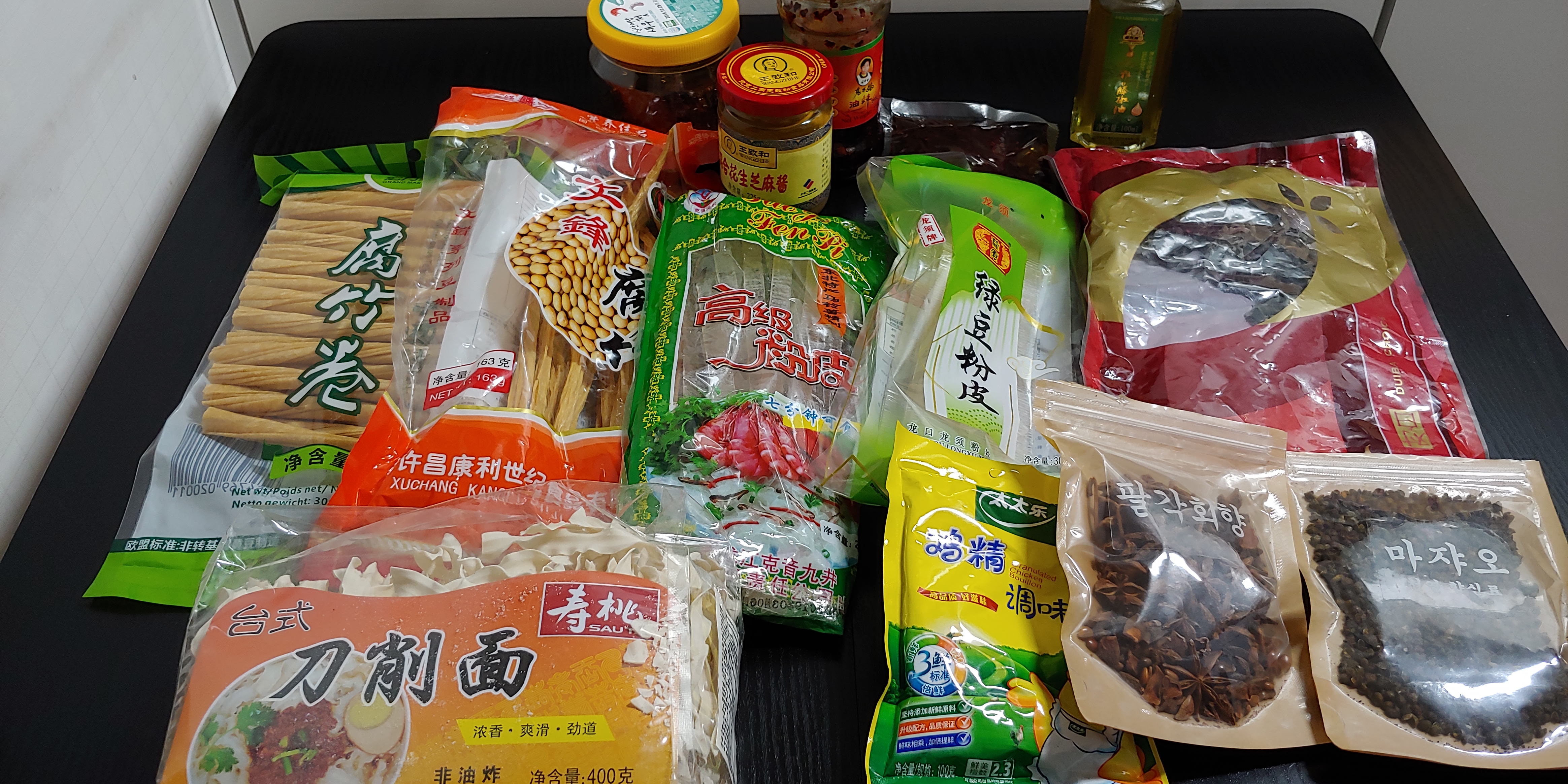 중국 식료품 가게에서, 인터넷 쇼핑으로 하나 둘 구입한 실온 재료들.