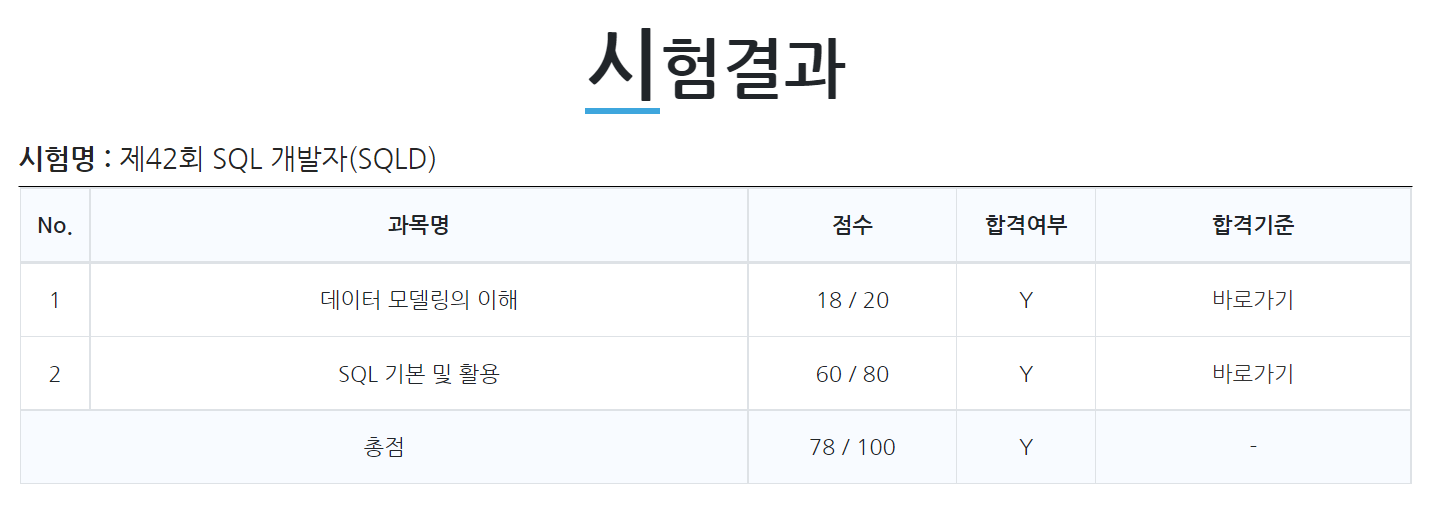 SQLD시험 하루 전 날 급하게 기출문제 벼락치기를 해서 나름 안정적으로 합격 했답니다.