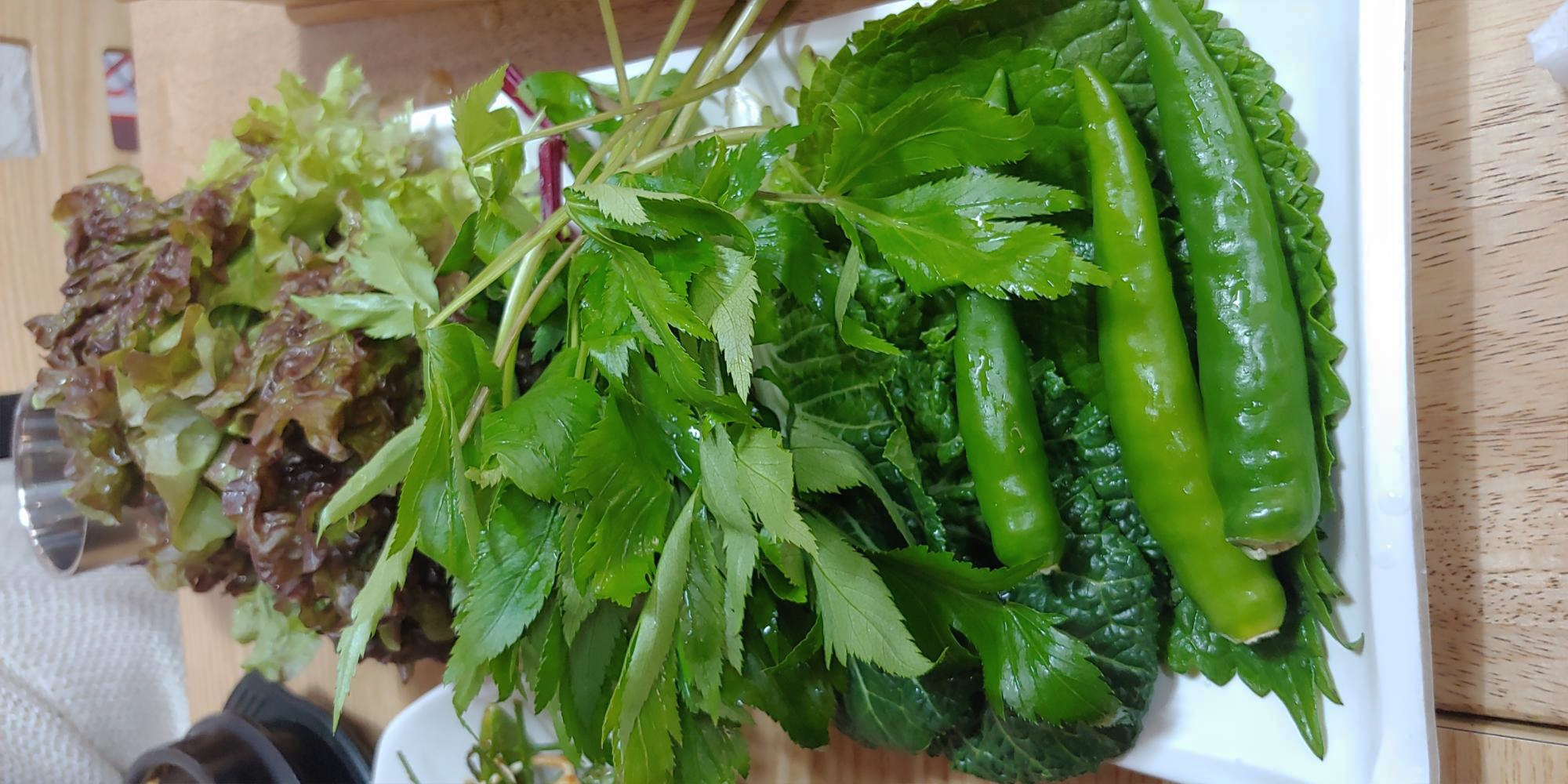 기름이 좀 나오면 콩나물과 김치를 같이 구워주십니다. 그리고 기본 찬이 진짜 너무 잘나옵니다. 사장님께서 음식솜씨가 상당하십니다. 방문 할때마다 반찬의 종류가 다르고 그게 또 너무 맛있습니다. 그리고 쌈채소를 보는 순간 삼림욕을 하실 수 있습니다. 숲에 들어온 수준입니다. 쌈채소의 종류도 많고 정말 신선합니다. 아무리 바빠도 미리 담아 놓지 않고 그때 그때 상에 낸다고 하십니다.