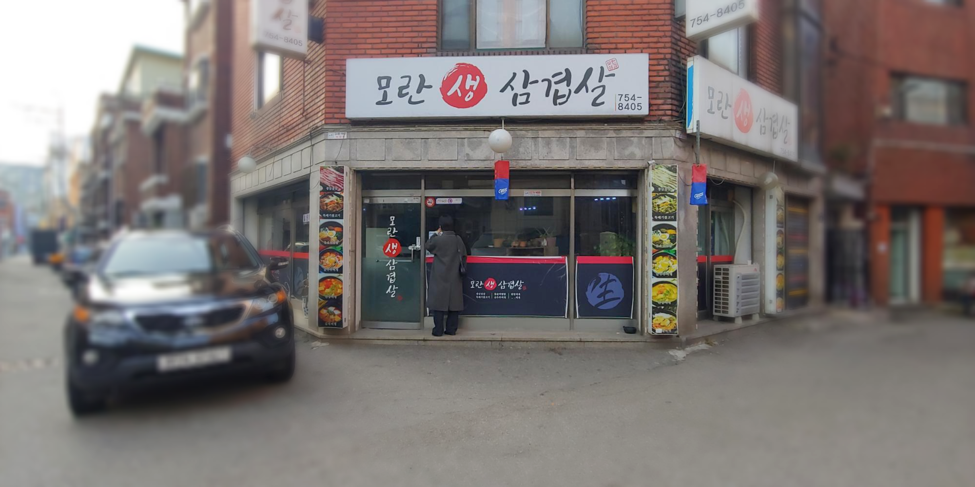 모란생삼겹살입니다. 3년 정도 꾸준히 재방문 중인 곳입니다. 뉴코아 아울렛 오른편으로 쭉 들어오시면 위치한 가게입니다. 다른 가게들보다 주택가쪽으로 빠져있어 저의 은밀한 맛집이었는데 이제 단골손님들이 제법 많은 것 같습니다.