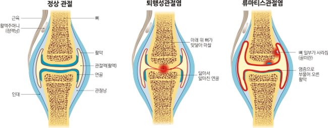 연골을 많이 사용하여 일단 닳아있다면 자연적으로 회복되기 힘들고 인공관절을 이식하는 수술을 하지 않는 이상 잦은 염증과 통증에 시달리게 됩니다. 때문에 무엇보다도 예방이 중요합니다. 꾸준한 운동을 통해 관절 주위의 근육을 키우고 체중을 조절해 관절에 가해지는 데미지와 압력을 덜어야 합니다.