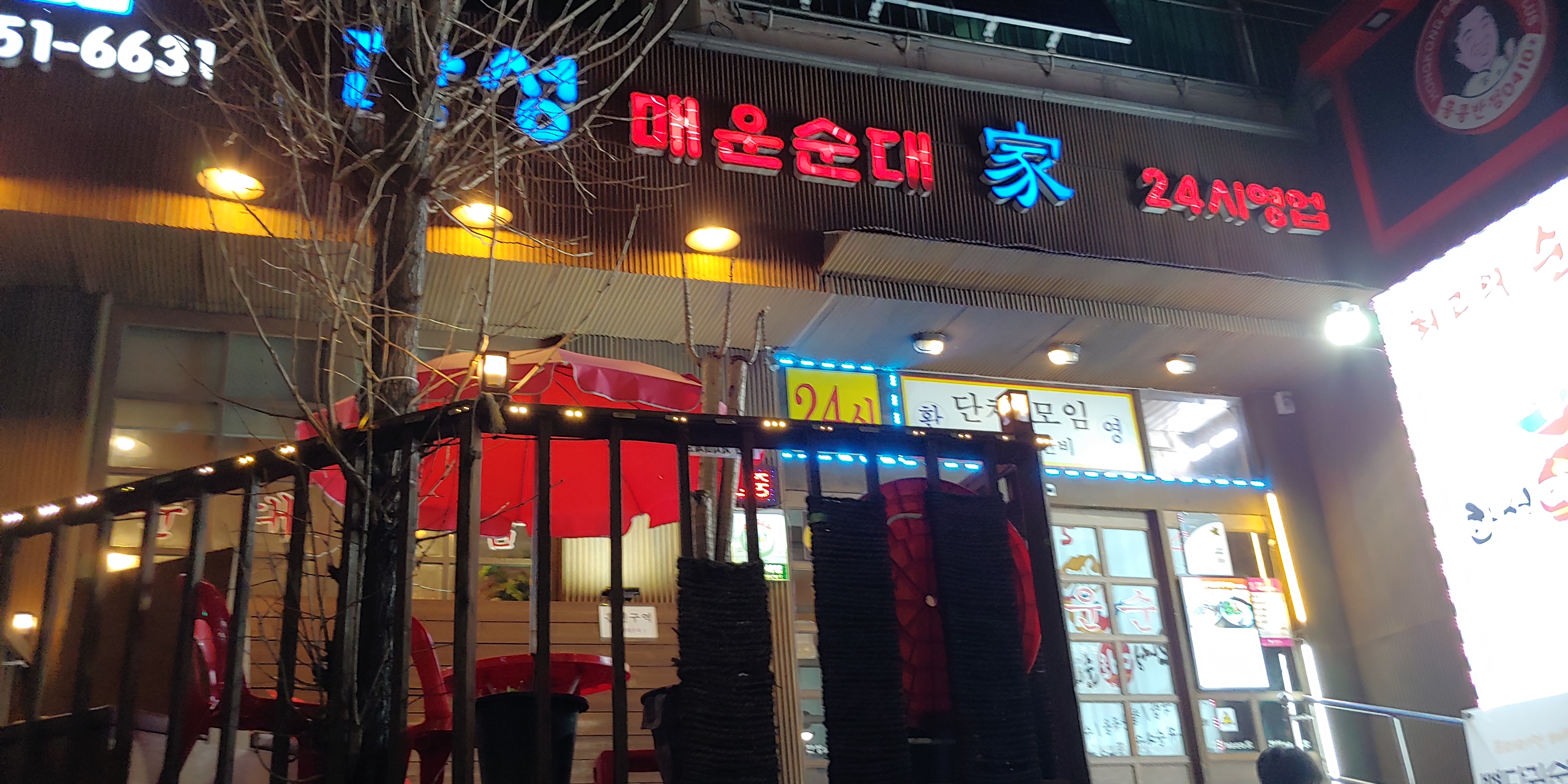 순대국밥집 치고는 정말 크죠? 외관부터 왠지 맛집 냄새를 폴폴 풍깁니다. 매운 순대라니!! 게다가 요즘 흔치 않은 24시 영업집입니다. 가게 내부는 손님들이 꽤나 많이 식사하고 계셔서 못 찍었는데 내부도 정말 크고 테이블이 여유 있게 배치되어 있었어요.