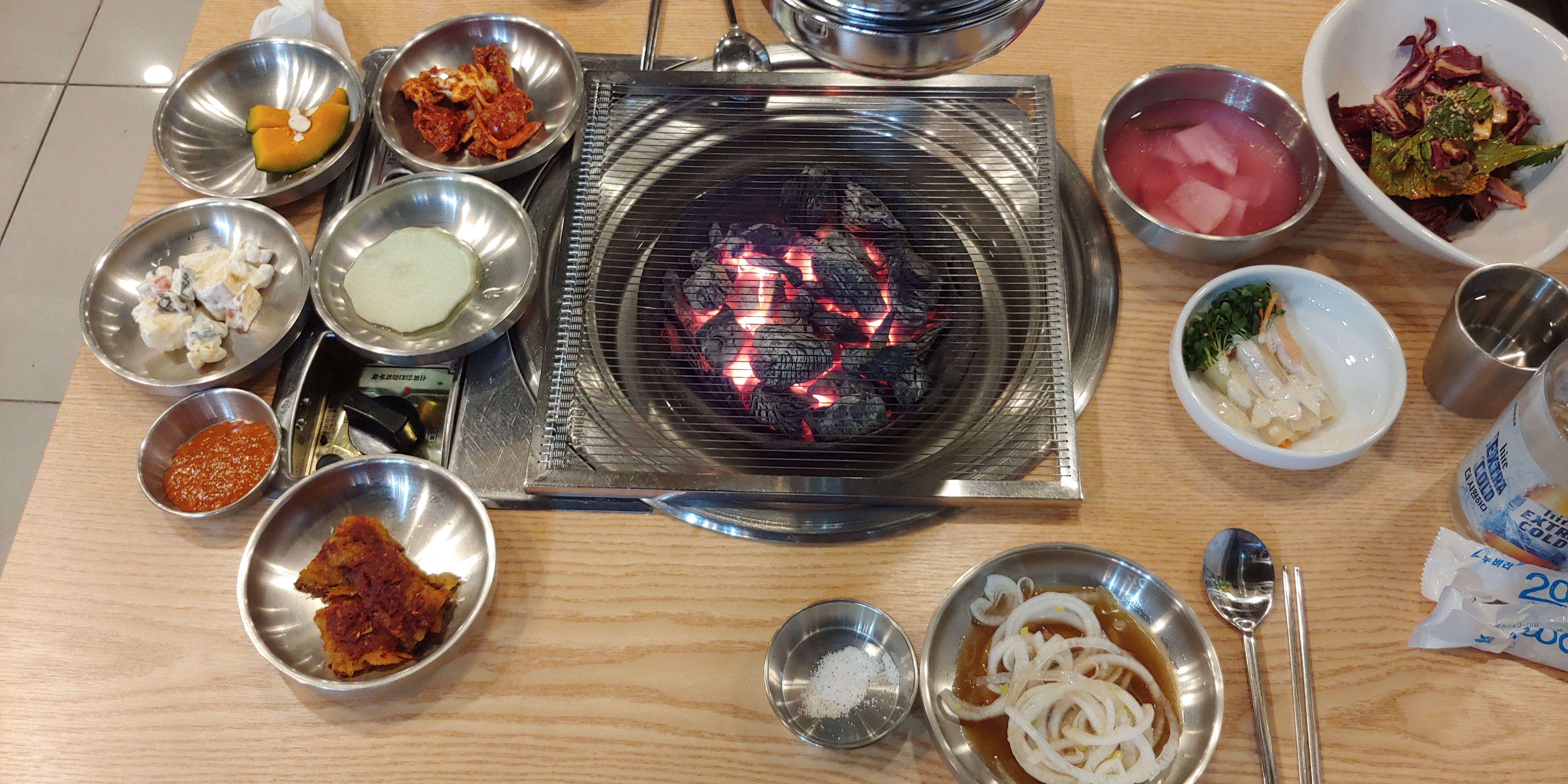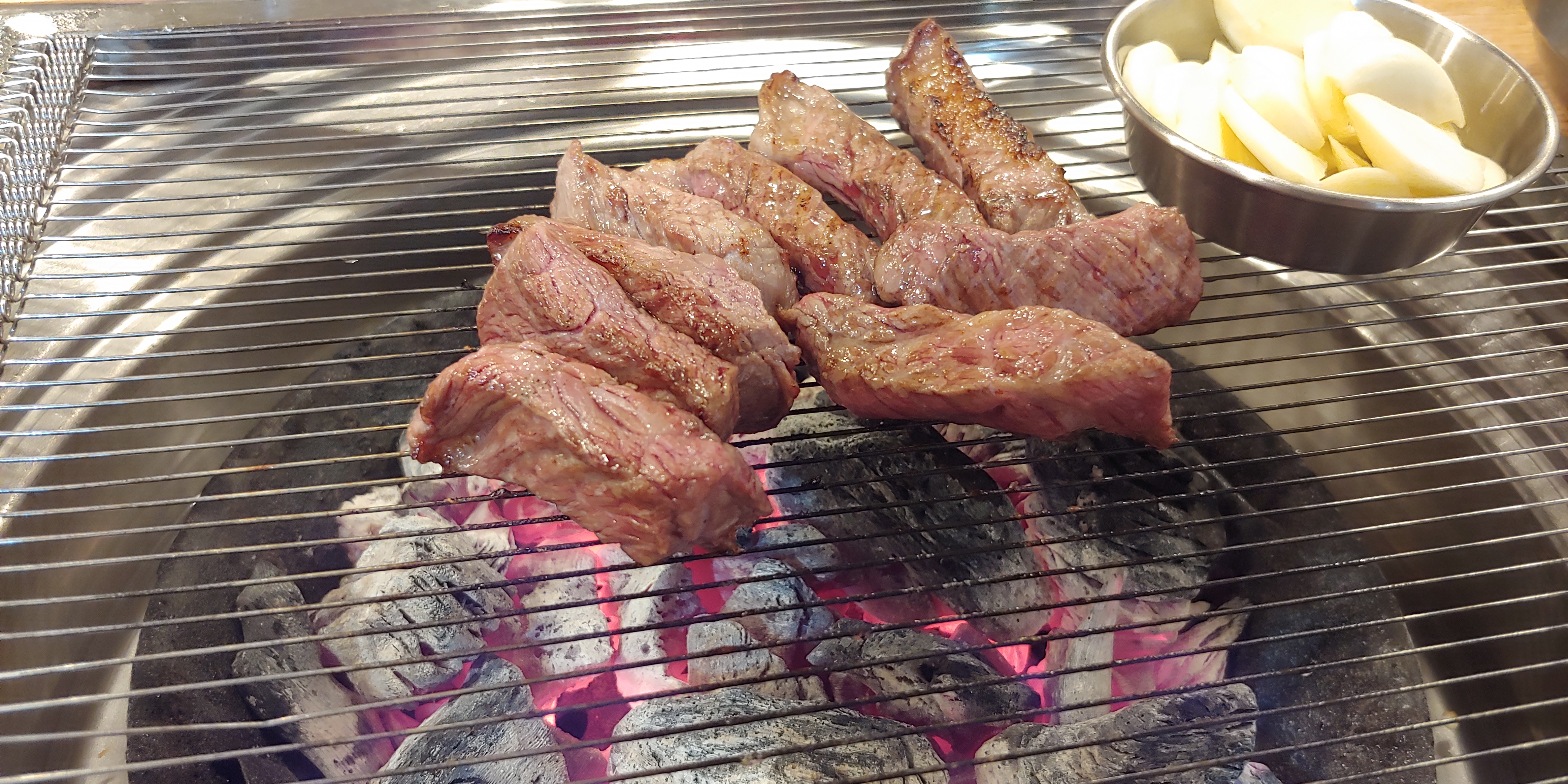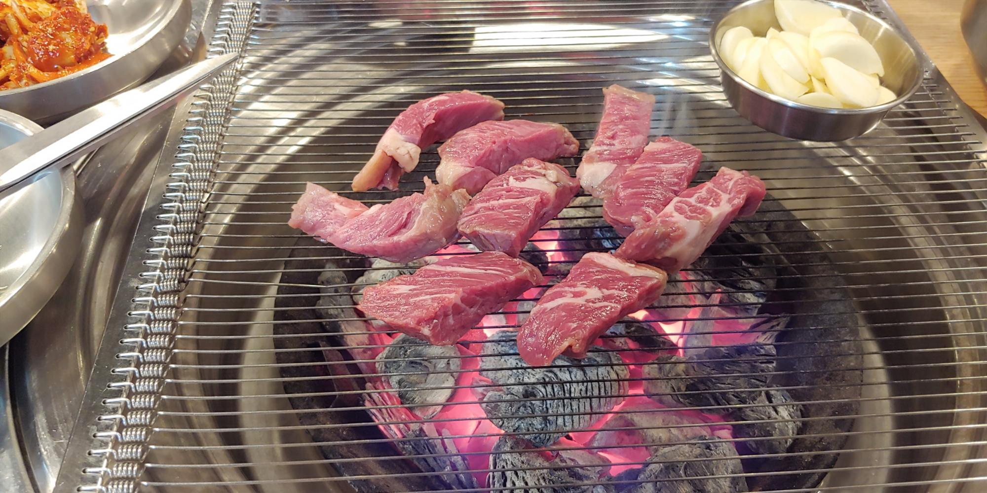 쌈채소에 감탄하고 돌아오니 사장님께서 소갈비를 불판에 올려놓으셨군요. 아름다운 자태입니다.
