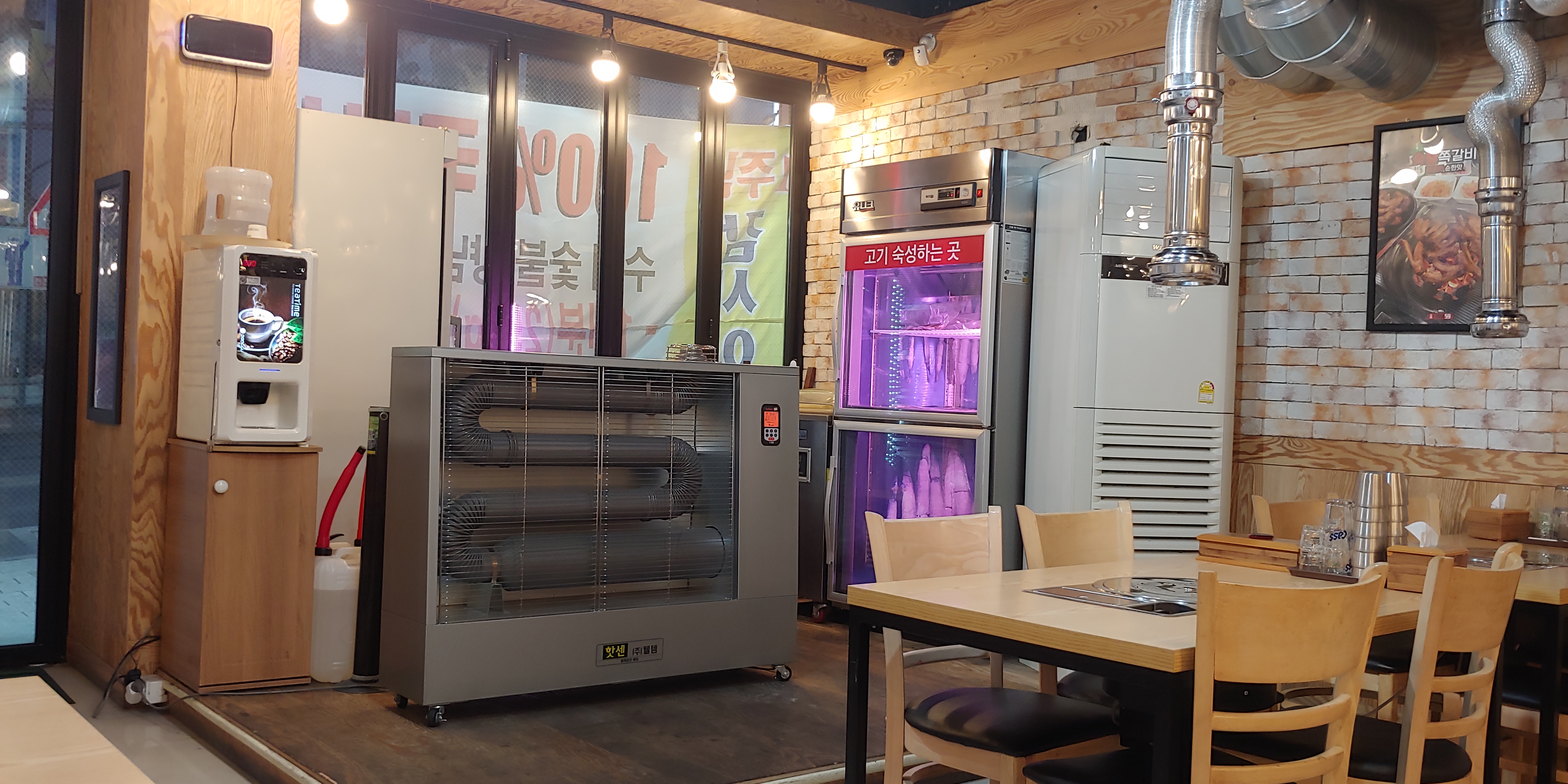 가게로 들어서면 입구에 고기를 숙성하는 모습을 볼 수 있습니다. 옆에서 아마 진공 포장도 하시나 봐요. 식사 중에 덜컹덜컹하면서 존재감 뿜뿜이었습니다. '세상에서 제일 맛있는 갈비'라는 멘트도 왠지 귀엽게(?) 느껴졌는데, 이런 보이는 부분들이 사장님의 자신감과 연결되는 것 같아서 좋아 보였습니다.