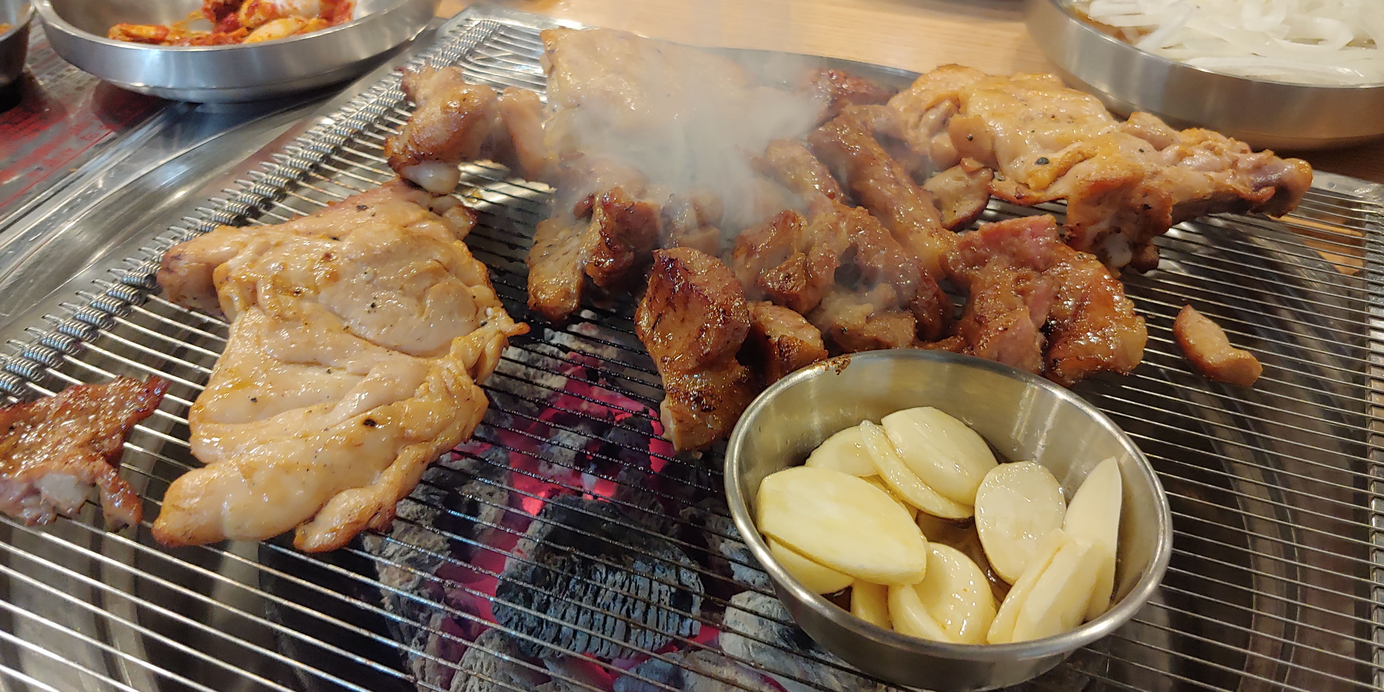 소갈비 진짜 핵맛입니다. 역시 소갈비.. 따봉. 제 개인적인 취향이지만 초벌구이 해주신 돼지갈비나 특히 닭갈비는 딱히 엄청 맛있다는 건 모르겠어요 ㅠㅠ 양념이 강한 닭갈비에 익숙해서 그런가 봅니다. 화풍의 갈비는 숯불향이 은은합니다. 그래도 고기는 항상 옳습니다. 잘 먹었습니다~