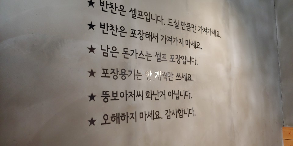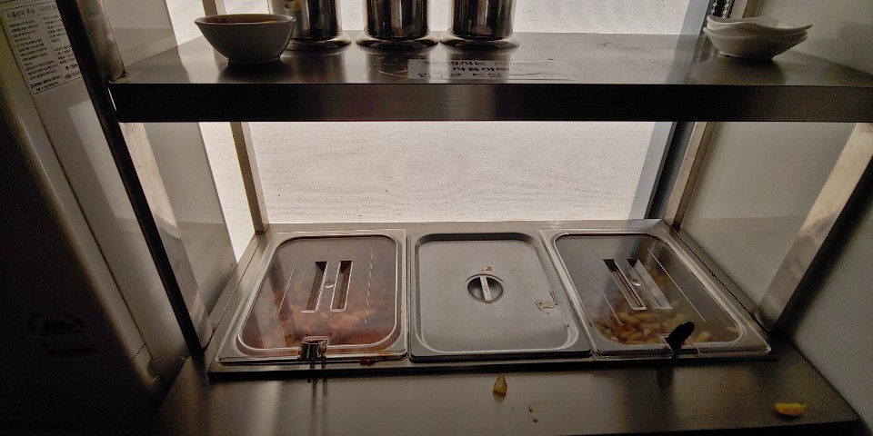 셀프 반찬코너에는 사진상 안 나왔지만 위에 포장용기가 가득합니다. 돈가스가 엄청 커서 대부분 다 못 드시고 남겨가시더라고요. 저희는 먹대장이기 때문에 코웃음 한번 날려주고 애피타이저로 반찬 한 그릇 뚝딱.