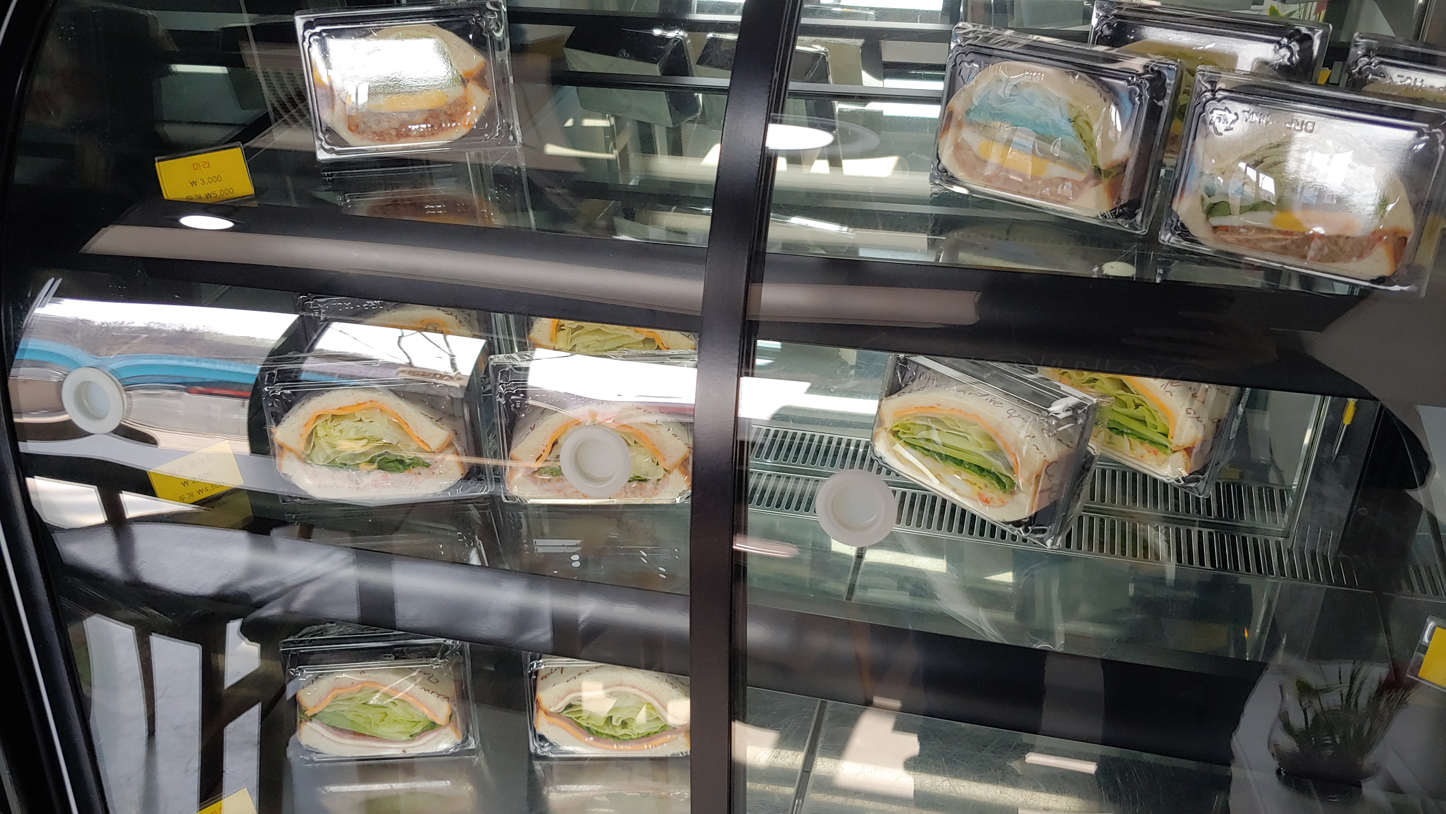 샌드위치는 옆의 진열대에 빵빵한 놈으로 골라서 직접 꺼내면 됩니다. 다들 아주 뽕실뽕실 빵빵하군요 (흐뭇)