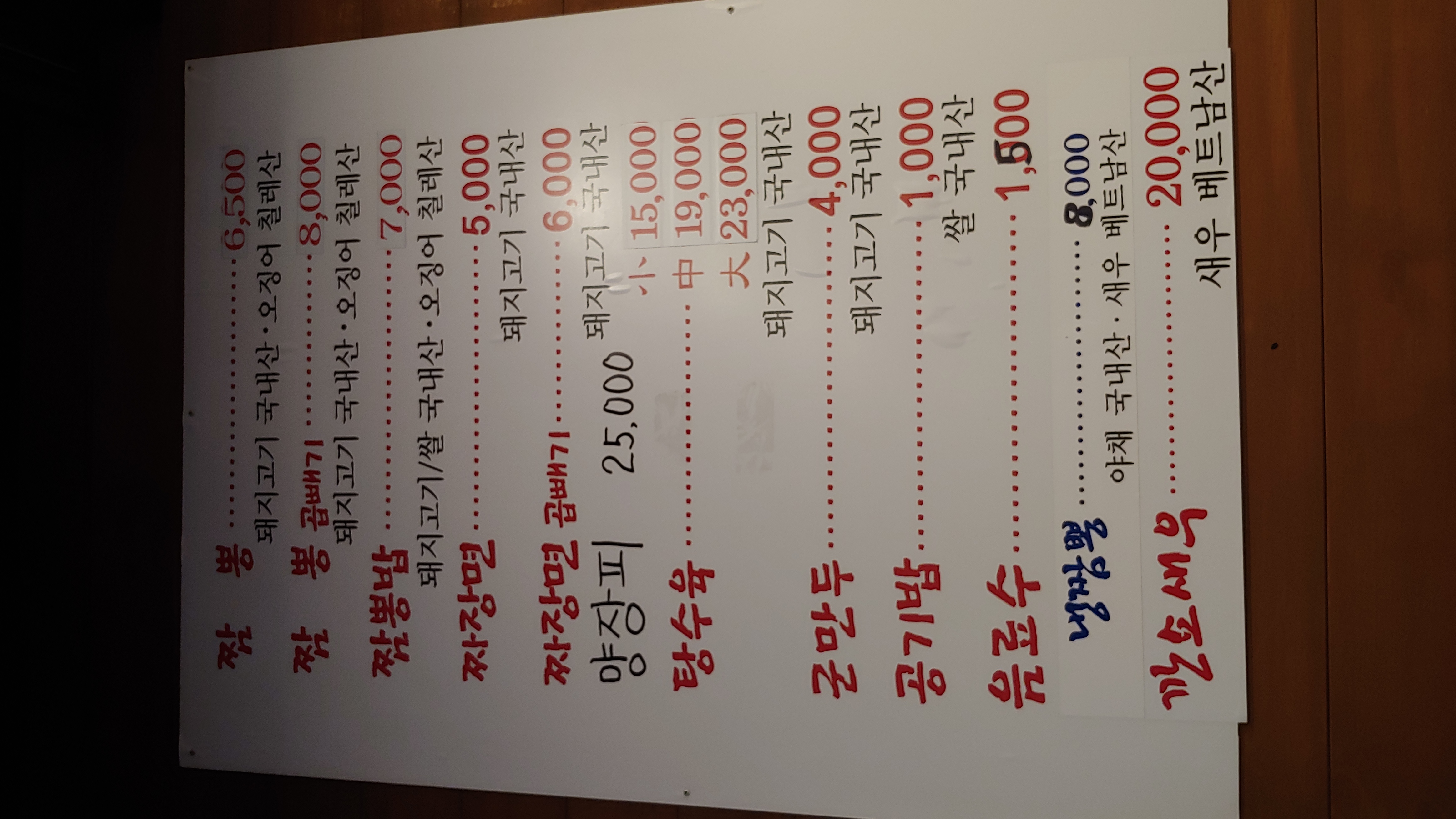 메뉴판인데요, 생각보다 종류가 적습니다. <짬뽕 타임 24시>에서 상호만 바꾸신 것 같은데 메뉴도 약간 독자적인 노선을 걸으시는 것 같네요? 볶음밥도 없어요. 하지만 저는 아무 상관없지요. 계획대로 짬뽕 곱빼기와 탕수육(소)을 주문했습니다. 그래서 오늘은 23,000원입니다.