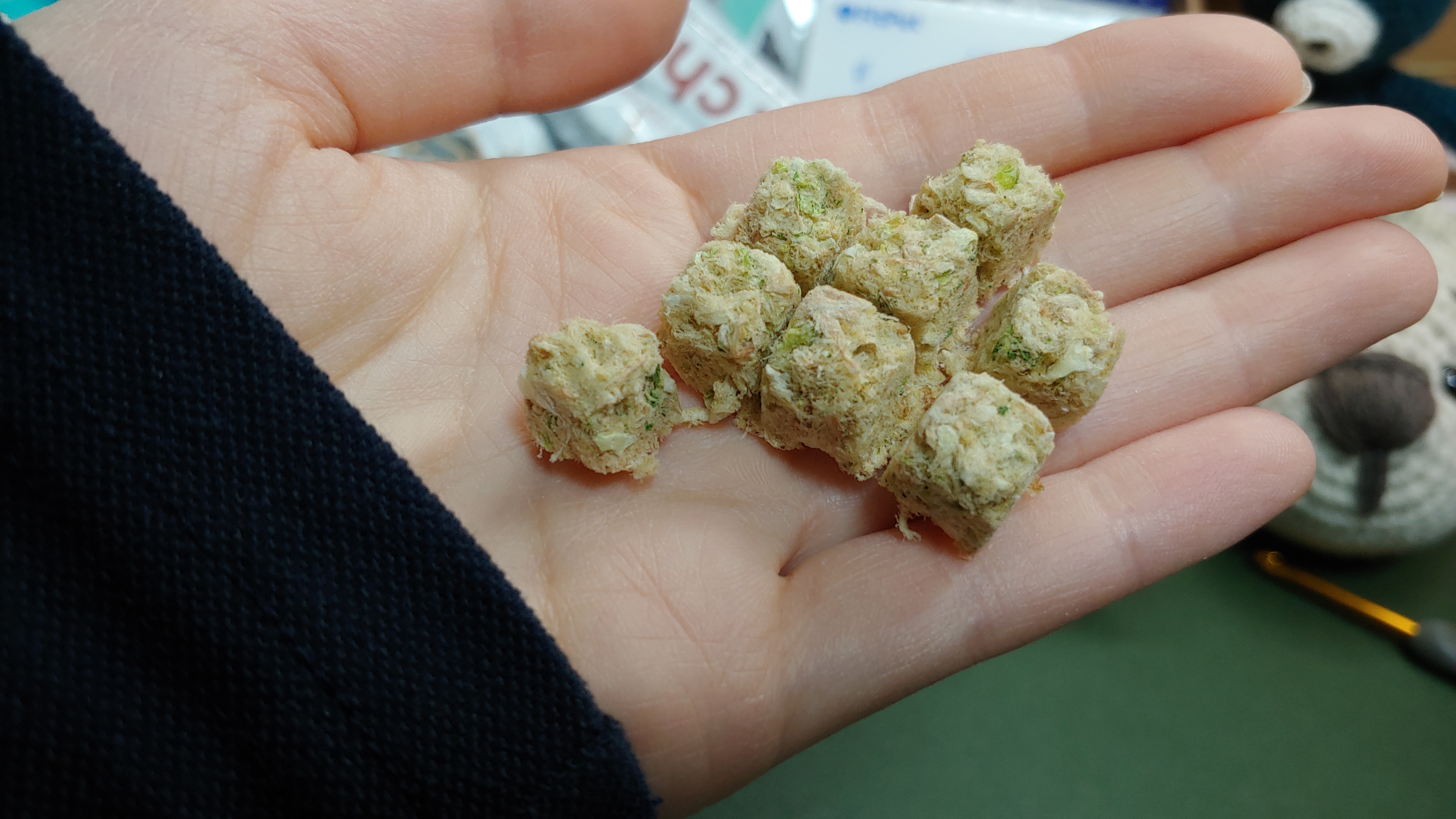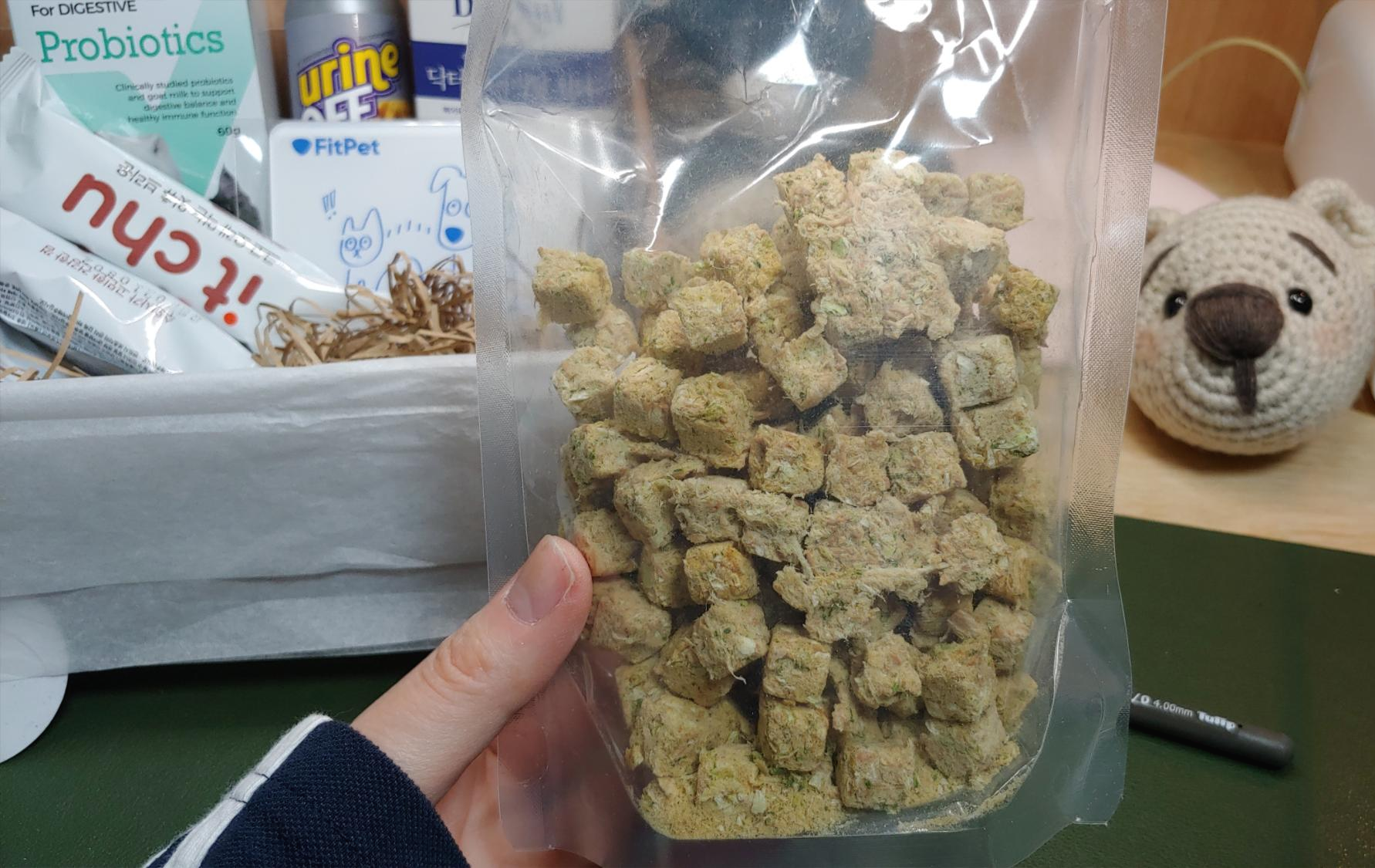 잘 말린 북어포, 멸치 냄새가 나서 제 입으로 들어갈 뻔한 걸 잘 참았습니다.😂😂 북어가 강아지한테 1등 보양식인 거 아시나요? 이렇게 브로콜리 등 채소들과 같이 간편하게 급여할 수 있어서 너무 편리합니다. 동결건조 간식은 보통 너무 비싼데, 핏펫박스에 들어있어서 기분이 좋았어요 ㅋㅋ