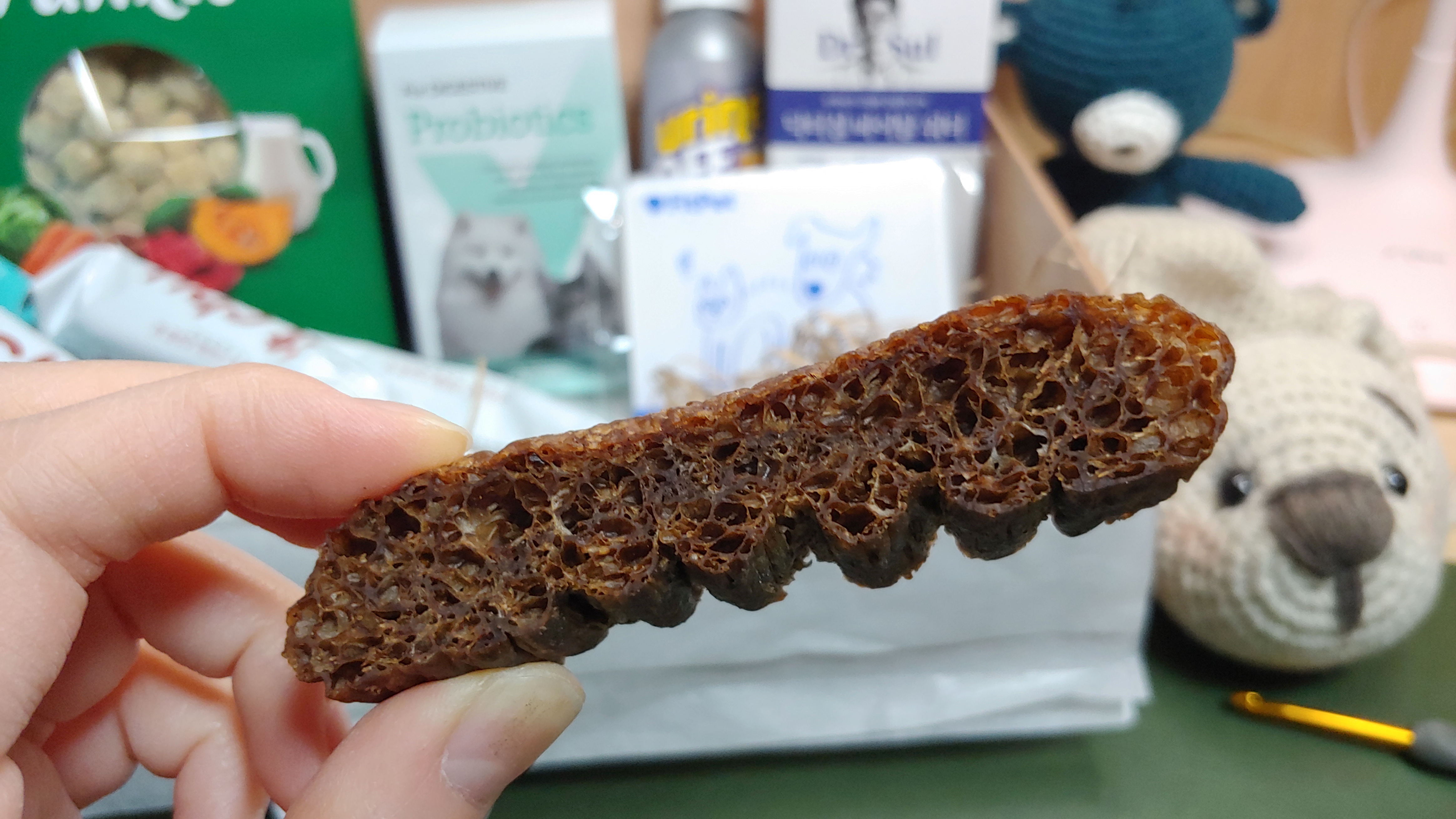 냄새는 북어랑 비타민이 섞여 인간의 코에는 별로 맞지 않네요.