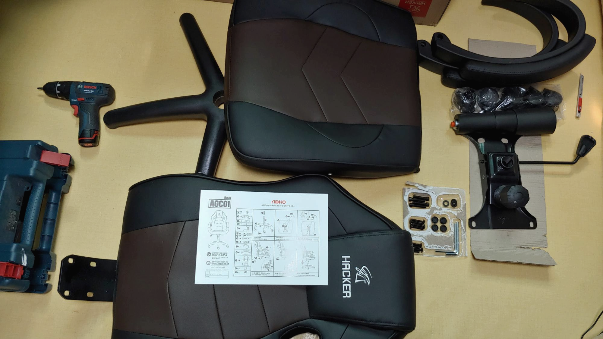 구성품 전체 샷입니다. 드릴은 제 건데 안 썼어요. 동봉된 렌치만 있으면 되더라고요. (머쓱)
