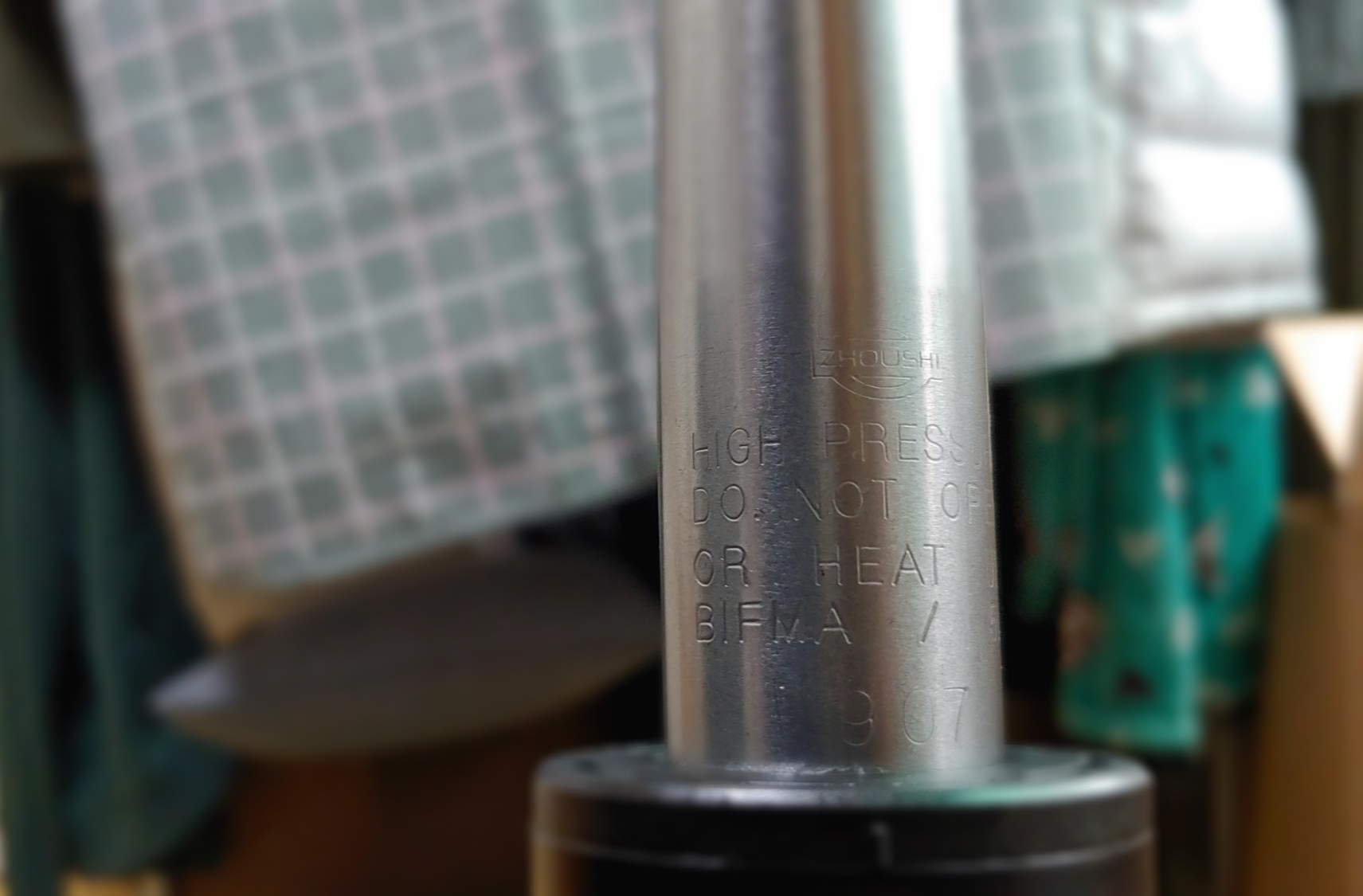 의자의 핵심 부분인 가스스프링인데요. class-2 등급이라고 해요. 웬만한 괜찮은 의자들은 class-4 등급을 장착하는 것 같은데 지지 하중이 좀 작은 편인 게 이것 때문이에요. zhoushi라고 적혀있네요? 아무래도 중국산인 듯. 괜찮겠죠. 우리 식구는 가벼우니까.